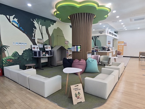 ¸¶ÁÖ½°ÅÍ´Â ÁֹΠ´©±¸³ª Æí¾ÈÇÏ°Ô ¸Ó¹°¸ç ¼ÒÅëÇÒ ¼ö ÀÖ´Â °ø°£À¸·Î, È޽İú Àü½Ã, ³îÀÌ ±â´ÉÀÌ ¾î¿ì·¯Áø »ýȰ¹®È½°ÅÍ·Î »õ·Ó°Ô ´ÜÀåµÇ°í ÀÖ´Ù. °ø°£¿¡´Â ÇØ¹Ù¶ó±â Àå½Ä°ú ²ÉȺÐÀ» ¼³Ä¡ÇØ ¹à°í µû¶æÇÑ ºÐÀ§±â¸¦ Á¶¼ºÇßÀ¸¸ç, ÁֹεéÀÌ Àá½Ã ½¬¾î°¡°Å³ª »çÁøÀ» ÂïÀ» ¼ö ÀÖ´Â Æ÷ÅäÁ¸ ¿ªÇÒµµ Çϰí ÀÖ´Ù.