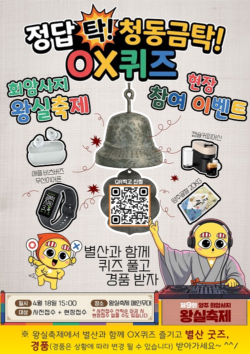 ¾çÁֽð¡ ¿À´Â 18ÀÏ ‘Á¦9ȸ ¾çÁÖ È¸¾Ï»çÁö ¿Õ½ÇÃàÁ¦’ ¸ÞÀι«´ë¿¡¼ ‘Á¤´ä Ź! ûµ¿±ÝŹ! º°»ê OX ÄûÁî’¸¦ ¿°í Âü°¡ÀÚ 400¸íÀ» ¼±Âø¼ø ¸ðÁýÇÑ´Ù.