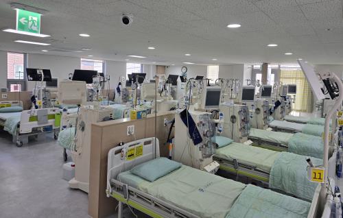 ÀÇ·á ÀÎÇÁ¶ó ¸é¿¡¼­µµ ³ôÀº ¼öÁØÀ» °®Ãè´Ù. ¼¼°èÀû Åõ¼® Àü¹®±â¾÷ FMC(Fresenius Medical Care)ÀÇ ÃֽŠÅõ¼®±â¸¦ Àü º´»ó¿¡ µµÀÔÇßÀ¸¸ç, ÃÊ¿©°ú ¸âºê·¹ÀÎ °í±Þ Á¤¼ö½Ã¼³À» ±¸ÃàÇØ ¼öÁú ¾ÈÀü¼º°ú Åõ¼® È¿À²À» µ¿½Ã¿¡ ³ô¿´´Ù. ¶ÇÇÑ Àü º´»ó Àüµ¿Ä§´ë¿Í °³ÀÎ ¸ð´ÏÅ͸¦ ¼³Ä¡ÇØ Àå½Ã°£ Åõ¼® Ä¡·á Áß È¯ÀÚÀÇ ÆíÀÇ¿Í ÄèÀûÇÔÀ» ±Ø´ëÈ­Çß´Ù.