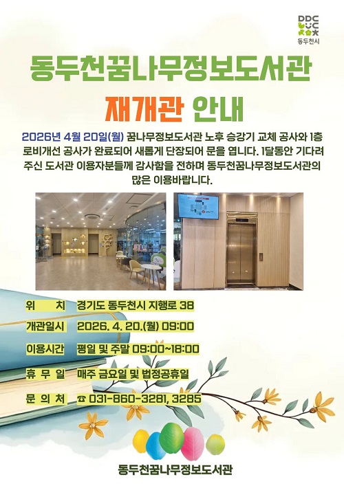 µ¿µÎõ½Ã µµ¼¹®È»ç¾÷¼Ò ²Þ³ª¹«Á¤º¸µµ¼°üÀÌ ÀÌ¿ëÀÚ ÆíÀǼº°ú ¾ÈÀü¼º °È¸¦ À§ÇÑ ½Â°±â ±³Ã¼ °ø»ç¿Í 1Ãþ ·Îºñ ȯ°æ°³¼± °ø»ç¸¦ ¸¶Ä¡°í Áö³ 4¿ù 20ÀϺÎÅÍ Àç°³°üÇß´Ù.