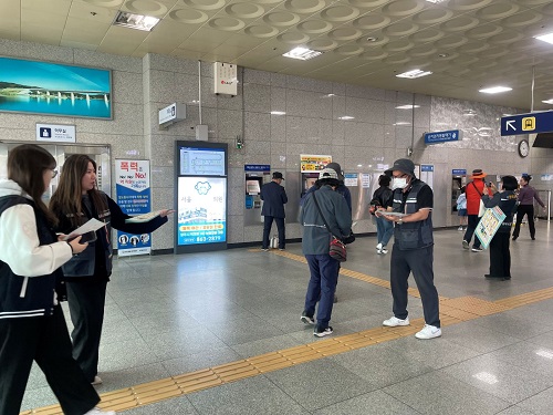 À̳¯ ÁöÇÏö ¿ª»ç¿¡¼µµ Ãâ±Ù ½Ã¹ÎÀ» ´ë»óÀ¸·Î È«º¸¹° ¹èºÎ¿Í ¿¹¹æ¼öÄ¢ ¾È³» µî Ä·ÆäÀÎÀÌ ÁøÇàµÆ´Ù. ÁÖ¿ä ¿¹¹æ¼öÄ¢À¸·Î´Â ¡ã3½Ã°£¸¶´Ù ¸ð±â±âÇÇÁ¦ »ç¿ë ¡ã¾ß°£È°µ¿ ½Ã ¹àÀº»ö ±ä ¿Ê Âø¿ë ¡ã¾ß¿ÜȰµ¿ ÈÄ »þ¿öÇϱ⠵îÀÌ ¾È³»µÆÀ¸¸ç, ¿Ã¹Ù¸¥ ¼Õ¾Ä±â ½ÇõÀ» °Á¶ÇÏ´Â È«º¸µµ ÇÔ²² ÀÌ·ïÁ³´Ù.