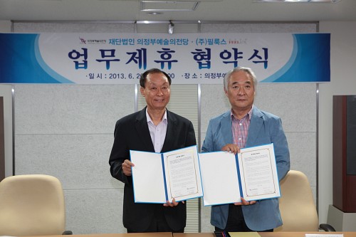26ÀÏ ¿ÀÀü ÀÇÁ¤ºÎ¿¹¼úÀÇÀü´ç¿¡¼ ÃÖÁø¿ë ÀÇÁ¤ºÎ¿¹¼úÀÇÀü´ç »çÀå°ú ³ë½Ãû (ÁÖ)Çʷ轺 ȸÀå µî °ü°èÀÚµéÀÌ Âü¼®ÇÑ °¡¿îµ¥ ¾÷¹« Çù¾à½ÄÀ» °¡Á³À¸¸ç, À̹ø ¾÷¹«Á¦ÈÞ¸¦ ÅëÇØ¼ ÀÇÁ¤ºÎ±¹Á¦À½¾Ç±ØÃàÁ¦¸¦ ºñ·ÔÇÑ ´Ùä·Ó°í dzºÎÇÑ ÀÇÁ¤ºÎ¿¹¼úÀÇÀü´çÀÇ ¹®È¿¹¼ú ÇÁ·Î±×·¥°ú (ÁÖ)Çʷ轺ÀÇ °¡Á·¹®È´ëÃàÁ¦, ¶óÀÌÆÃÄܼƮ, »ó¼³ Á¶¸íÀü½Ãȸ, ºûÀ» ÁÖÁ¦·Î ÇÑ È¸ÈÀü µî ¾ç ±â°üÀÇ °ø¿¬, ±³À°, Àü½ÃÇÁ·Î±×·¥ÀÇ ¹®È¼ºñ½º¸¦ ÅëÇØ Áö¿ª ¹®È ¹ßÀü¿¡ À̹ÙÁöÇÏ°í ¹®È¿¹¼úÀα¸ÀÇ Àúº¯ È®´ëÀÇ Åä´ë¸¦ ¸¶·ÃÇÏÀڴµ¥ ±× ÃëÁö¸¦ ÇÔ²² Çß´Ù.