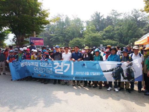 17ÀÏ ¿ÀÀüºÎÅÍ °æ±âµµ ¿¬Ãµ°ú °¿øµµ ö¿ø ÆòÈ´©¸®±æ¿¡¼ ¿¸° ‘ÆòÈ´©¸®±æ 12ÄÚ½º ¿¬Àå ±â³ä °È±âÇà»ç’°¡ °æ±âµµ¹Î°ú °¿øµµ¹ÎÀ» ºñ·ÔÇÑ 4¹é¿© ¸íÀÌ Âü¼®ÇÑ °¡¿îµ¥ ¼ºÈ²¸®¿¡ °³ÃֵƴÙ.