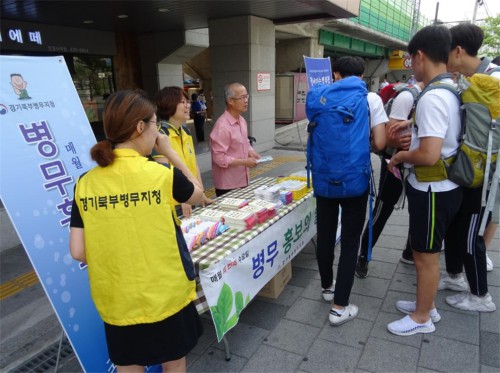 ÀÌ¾î¼ Àα٠ºÏÇѻ걹¸³°ø¿ø µµºÀ»ç¹«¼Ò¸¦ ã¾Æ µî»ê°´µé¿¡°Ôµµ “º´¹«ÇàÁ¤ ¾Ë¾ÆµÎ±â” ¸®Ç÷¿ µîÀ» ³ª´²ÁÖ¸ç Áö¿ª °ü±¤°´À» ´ë»óÀ¸·Î ÇÑ º´¹«ÇàÁ¤ È«º¸µµ º´ÇàÇÏ¿´´Ù.