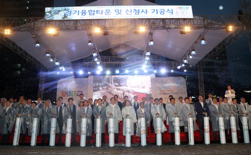 ƯÈ÷ ±â°ø½Ä¿¡ ¾Õ¼ ÁøÇàµÈ ±â³ä½Ä¼ö´Â 31°³ ½Ã±ºÀÇ Çϳª µÊÀ» ÀǹÌÇÏ´Â ÇÕÅäÇÕ¼ö½ÄÀ¸·Î ÁøÇàµÅ ´«±æÀ» ²ø¾ú´Ù. 31°³ ½Ã±º ´ëÇ¥ÀÚµéÀº ¼ö¿ø½Ã ±¤±³»ê°ú ¼ö¿øÃµ ¹° µî °¢ Áö¿ªÀ» ´ëÇ¥ÇÏ´Â Èë°ú ¹°À» ±â³ä½Ä¼öÀÎ ÀºÇ೪¹«¿¡ »Ñ¸®¸ç °æ±âÀ¶ÇÕŸ¿î°ú ½Åû»çÀÇ Ãâ¹ßÀ» ÃàÇÏÇß´Ù.