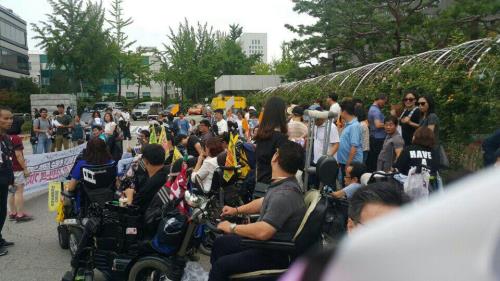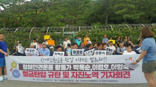 Àü±¹Àå¾ÖÀÎÂ÷º°Ã¶Æó¿¬´ë´Â 7¿ù17ÀÏ ¼¿ïÁß¾ÓÁö¹æ¹ý¿ø ¾Õ¿¡¼ ‘Àå¾ÖÀο ¹ú±Ý ź¾Ð ±Ôź ÀÚÁø ³ë¿ª °áÀÇ ±âÀÚȸ°ß’À» ¿°í ÀÌ »çȸÀÇ Çö½Ç¿¡ ÇÇ´«¹°À» ½ñ¾Ò´Ù.