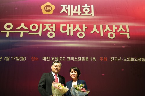 °æ±âµµÀÇȸ °æÁ¦°úÇбâ¼úÀ§¿øÈ¸ È«¼®¿ì ÀÇ¿ø(ÀÚÀ¯Çѱ¹´ç, µ¿µÎõ1)°ú ¿ø¹ÌÁ¤ ÀÇ¿ø(´õºÒ¾î¹ÎÁÖ´ç, ¾È»ê8)ÀÌ 17ÀÏ ´ëÀü È£ÅÚ ICC¿¡¼ °³ÃÖµÈ Àü±¹½ÃµµÀÇȸÀÇÀåÇùÀÇȸ ÁÖÃÖ Á¦4ȸ ¿ì¼öÀÇÁ¤´ë»ó ½Ã»ó½Ä¿¡¼ ÀÇÁ¤´ë»óÀ» ¼ö»óÇÏ¿´´Ù.