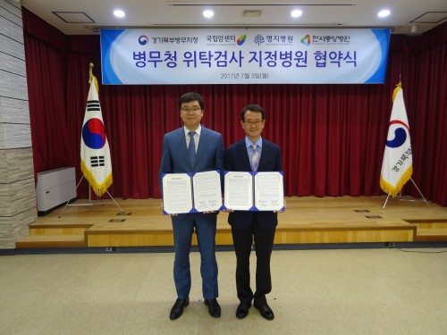 ÇÑÆí, 2007³âºÎÅÍ ¿î¿µµÇ°í ÀÖ´Â º´¹«Ã» '¹Î°£ÀÇ·á±â°ü À§Å¹°Ë»ç Á¦µµ'´Â ÀÚü º¸À¯ ÀÇ·áÀåºñ·Î °Ë»ç°¡ °ï¶õÇÑ Áúȯ¿¡ ´ëÇØ ¿ÜºÎ ¹Î°£º´¿ø¿¡ À§Å¹°Ë»ç¸¦ ÀÇ·ÚÇÏ¿© ±× °á°ú¸¦ Âü°íÇÏ¿© ½Åüµî±ÞÀ» ÆÇÁ¤ÇÏ´Â Á¦µµÀÌ´Ù. ÇöÀç Àü±¹ÀûÀ¸·Î 87°³ÀÇ Çù¾àº´¿øÀÌ ¿î¿µµÇ°í ÀÖÀ¸¸ç, °æ±âºÏºÎº´¹«Áöû °ü³»¿¡´Â 3°³ÀÇ Çù¾àº´¿øÀÌ ÀÖ¾úÀ¸³ª, ÃÖ±Ù 3°³ º´¿ø (±¹¸³¾Ï¼¾ÅÍ, ¸íÁöº´¿ø, ÇѼÁß¾Óº´¿ø)°ú Ãß°¡ ü°áÇÏ¿© ¸ðµÎ 6°³ º´¿ø°ú Çù¾÷ü°è¸¦ ÀÌ·ç°í ÀÖ´Ù.