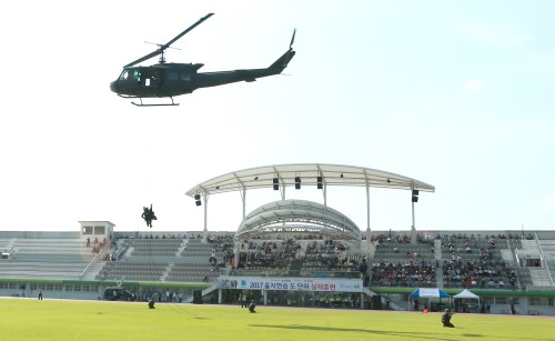 ÈÆ·Ã È¿°ú¸¦ ¹è°¡Çϱâ À§ÇØ ±¸Á¶Çï±â, ¼Ò¹æÂ÷, ÈÇÐÂ÷, °æÂûÂ÷, ¾Úºæ·±½º, ¿¬¸·Åº, È¿°úÀ½ µî °¢Á¾ ÀÚ¿øÀ» µ¿¿øÇßÀ¸¸ç, LED Àü±¤ÆÇÀ» Ȱ¿ëÇØ ÈÆ·Ã³»¿ëÀ» ½Ç½Ã°£À¸·Î Á¡°ËÇϰí ÁöÈÖÇÒ ¼ö ÀÖµµ·Ï ¾È³»Çß´Ù. ¶ÇÇÑ, µµ¹ÎµéÀÇ Âü¿©¸¦ µ¶·ÁÇÏ´Â Â÷¿ø¿¡¼ ÀÀ±Þóġ ½Ã¿¬ ¹× Àåºñ Àü½Ãȸµµ ÇÔ²² ÁغñÇß´Ù.