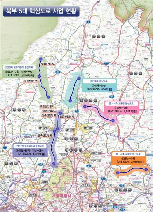 µµ´Â À̹ۿ¡µµ ÇöÀç ¡ã±¹µµ´ëü¿ìȸµµ·Î 3È£¼±(µ¿µÎõ »óÆÐ~¿¬Ãµ û»ê) 9.9km, ¡ã±¹Áöµµ 39È£¼±(¾çÁÖ ÀåÈï~±¤Àû, °¡³³~»ó¼ö) 12km, ¡ãÁö¹æµµ 371È£¼±(ÆÄÁÖ ¼³¸¶~±¸À¾, ¿¬Ãµ Àû¼º~µÎÀÏ) 14.4km, ¡ã±¹Áöµµ 98È£¼±(³²¾çÁÖ ¿À³²~¼öµ¿) 8.1km µîÀ» 5´ë Çٽɵµ·Î»ç¾÷À¸·Î ÃßÁø Áß¿¡ ÀÖ´Ù.