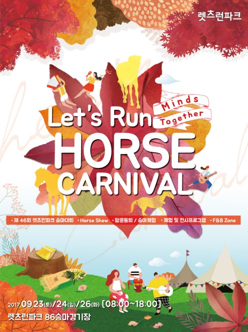 Çѱ¹¸¶»çȸ(ȸÀå À̾çÈ£)´Â ¸»»ê¾÷ Ȱ¼ºÈ¿Í ½Â¸¶ ´ëÁßȸ¦ À§ÇØ ½Â¸¶´ëȸ¿Í ¸»°ø¿¬, ´Ù¾çÇÑ Ã¼ÇèÇÁ·Î±×·¥À» Áñ±æ ¼ö ÀÖ´Â '2017 ¸» ¹®ÈÃàÁ¦ Let's Run! Horse Carnival'À» ¿À´Â 23ÀϺÎÅÍ 24ÀÏ, 26ÀÏ ÃÑ 3Àϰ£ °æ±âµµ °úõ ·¿Ã÷·±ÆÄÅ© ¼¿ï 86½Â¸¶°æ±âÀå¿¡¼ °³ÃÖÇÑ´Ù.