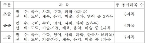 ½ÃÇè°ú¸ñÀº ÃÊÁ¹·ÁßÁ¹·°íÁ¹ ¸ðµÎ Çʼö¿Í ¼±ÅÃÀ¸·Î ±¸ºÐÇϸç, ÀÀ½Ã ¿µ¿ª¿¡ µû¸¥ °ú¸ñÀº ´ÙÀ½°ú °°´Ù.