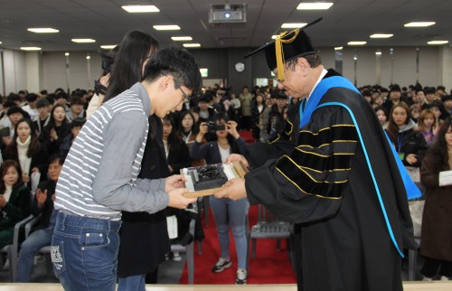 ÃÖ¼ºÇØ ÃÑÀåÀº ÀÔÇнĿ¡¼ À°Æ÷¿Í »ç¶ûÀÇ È¸Ãʸ®°¡ ´ã±ä ¿¹Æó¸¦ ½ÅÀÔ»ý ´ëÇ¥ÀÎ ¹Ú¹ÎÁ¤(µðÀÚÀÎÇкÎ, ¿©) Çлý°ú ±èŰæ(°ø°øÀÎÀçÇкÎ, ³²) ÇлýÀ¸·ÎºÎÅÍ ¹Þ°í, Çй®°ú Àΰݼö¾ç¿¡ ¸ÅÁøÇ϶ó´Â ¶æÀ¸·Î ÁöÇʹ¬À» ¼±¹°Çß´Ù.