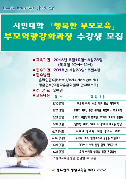 ±âŸ ÀÚ¼¼ÇÑ »çÇ×Àº µ¿µÎõ½ÃÆò»ý±³À°¿ø ȨÆäÀÌÁö(http://edu.ddc.go.kr) ½Ã¹Î´ëÇÐ ºÎ¸ð±³À° ÇÁ·Î±×·¥À» Âü°íÇϰųª Æò»ý±³À°¿ø(860-3257)À¸·Î ¹®ÀÇÇÏ¸é µÈ´Ù.