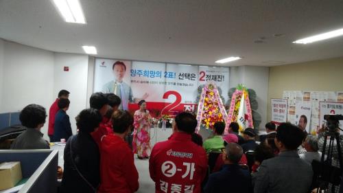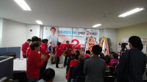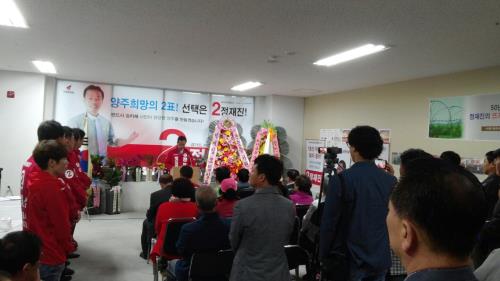 Á¤ÀçÁø(59) °æ±âµµÀÇ¿ø ¾çÁֽà Á¦1¼±°Å±¸(ȸõ1~4µ¿, ÀºÇö¸é, ³²¸é) ÀÚÀ¯Çѱ¹´ç ¿¹ºñÈ帰¡ 5¿ù12ÀÏ ¿ÀÈÄ 4½Ã ´ö°èµ¿ Çýµ¿Å¸¿ö¿¡¼ °°Àº ´ç ¿¹ºñÈĺ¸, °¡Á·, Ä£±¸, ÁöÁöÀÚ µî 200¿©¸íÀÌ Âü¼®ÇÑ °¡¿îµ¥ ÀÌ»öÀûÀÎ ¼±°Å»ç¹«¼Ò °³¼Ò½ÄÀ» ¿¾ú´Ù.