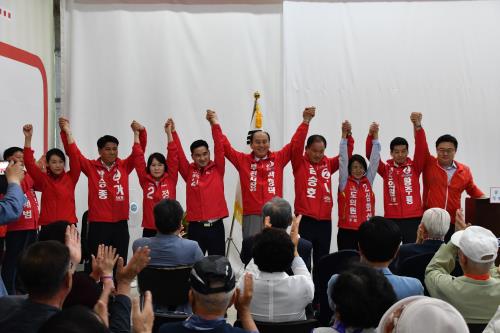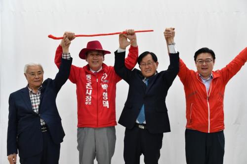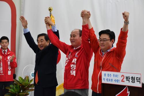 ¹ÚÇü´ö(58) ÀÚÀ¯Çѱ¹´ç µ¿µÎõ½ÃÀå ¿¹ºñÈĺ¸ÀÇ ¼±°Å»ç¹«¼Ò °³¼Ò½ÄÀÌ 5¿ù19ÀÏ ÁöÇ࿪ÇÁ¶óÀÚ¿¡¼ ½Ã¹Î, ´ç¿ø µî 1,000¿©¸íÀÌ Âü¼®ÇÑ °¡¿îµ¥ ¼ºÈ²¸®¿¡ °³ÃֵƴÙ.