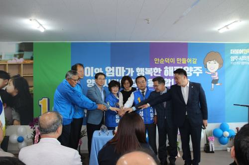¾È¼ø´ö(60) ¾çÁÖ½ÃÀÇ¿ø ´Ù¼±°Å±¸(¾çÁÖ1~2µ¿) ´õºÒ¾î¹ÎÁÖ´ç ¿¹ºñÈĺ¸ÀÇ ¼±°Å»ç¹«¼Ò °³¼Ò½ÄÀÌ ´ç¿ø°ú Áö¿ªÁֹΠµî 200¿©¸íÀÌ Âü¼®ÇÑ °¡¿îµ¥ 5¿ù19ÀÏ ¿·È´Ù.