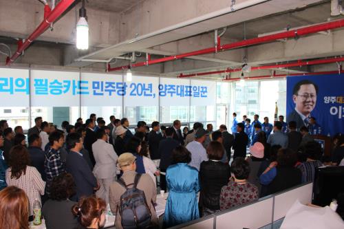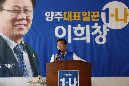 ÀÌÈñâ(57) ¾çÁÖ½ÃÀÇ¿ø ´Ù¼±°Å±¸(¾çÁÖ1~2µ¿) ´õºÒ¾î¹ÎÁÖ´ç ¿¹ºñÈĺ¸ÀÇ ¼±°Å»ç¹«¼Ò °³¼Ò½ÄÀÌ ½Ã·µµÀÇ¿ø ¿¹ºñÈĺ¸¿Í ´ç¿ø, ÁֹΠµî 300¿©¸íÀÌ Âü¼®ÇÑ °¡¿îµ¥ 5¿ù19ÀÏ °³ÃֵƴÙ.
