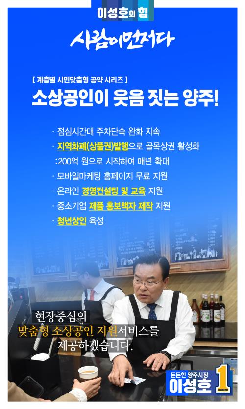 À̼ºÈ£(60) ´õºÒ¾î¹ÎÁÖ´ç ¾çÁÖ½ÃÀå È帰¡ ‘À̼ºÈ£ÀÇ Èû, »ç¶÷ÀÌ ¸ÕÀú´Ù’¶ó´Â ½½·Î°ÇÀ¸·Î °¢ °èÃþº° ½Ã¹Î¿¡ ´ëÇÑ Áö¿øÀ» °ø¾àÇϰí ÀÖ´Â °¡¿îµ¥, 6¿ù5ÀÏ µÎ ¹øÂ° ½Ã¸®Áî·Î ¼Ò»ó°øÀο¡ ´ëÇÑ Á¤Ã¥À» ¹ßÇ¥Çß´Ù.