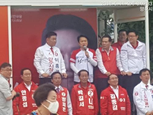 ³²°æÇÊ ÀÚÀ¯Çѱ¹´ç °æ±âµµÁö»ç È帰¡ 6¿ù11ÀÏ ¿ÀÈÄ 3½Ã ¾çÁÖ¿ª¿¡¼ ÀÌÈï±Ô(62) ¾çÁÖ½ÃÀå Èĺ¸¿¡ ´ëÇÑ ¸¶Áö¸· Áö¿ø À¯¼¼¸¦ °¡Á³´Ù.