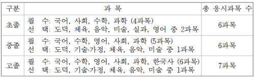½ÃÇè°ú¸ñÀº ÃÊÁ¹·ÁßÁ¹·°íÁ¹ ¸ðµÎ Çʼö¿Í ¼±ÅÃÀ¸·Î ±¸ºÐÇϸç, ÀÀ½Ã ¿µ¿ª¿¡ µû¸¥ °ú¸ñÀº ´ÙÀ½°ú °°´Ù.