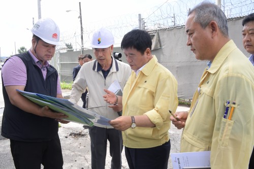 ÃÖ¿ë´ö µ¿µÎõ½ÃÀåÀº Áö³ 1ÀÏ ¹ßÇ¥µÈ È£¿ìÁÖÀǺ¸ ¹× ÅÂdz ºÏ»ó¿¹º¸·Î ÀÎÇØ °æ±âµµ¿¡¼ ÃßÁø ÁßÀÎ '½Åõ ÇÏõȯ°æ Á¤ºñ»ç¾÷' ÇöÀåÀ» ¹æ¹®ÇÏ¿©, °¨¸®´ÜÀå°ú ½Ã°ø»ç ¼ÒÀåÀ¸·ÎºÎÅÍ °ø»ç ÃßÁøÇöȲ ¹× ¹®Á¦Á¡À» º¸°í¹Þ¾Ò´Ù.