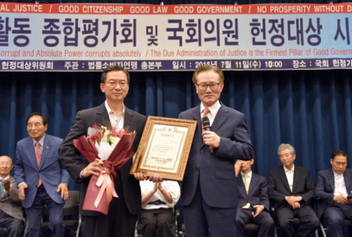 Á¤¼ºÈ£ ÀÇ¿ø(´õºÒ¾î¹ÎÁÖ´ç, ¾çÁÖ½Ã)ÀÌ 11ÀÏ ¹ý·ü¼ÒºñÀÚ¿¬¸ÍÀÌ ¼±Á¤ÇÏ´Â ±¹È¸ÀÇ¿ø ÇåÁ¤´ë»óÀ» ¼ö»óÇß´Ù.