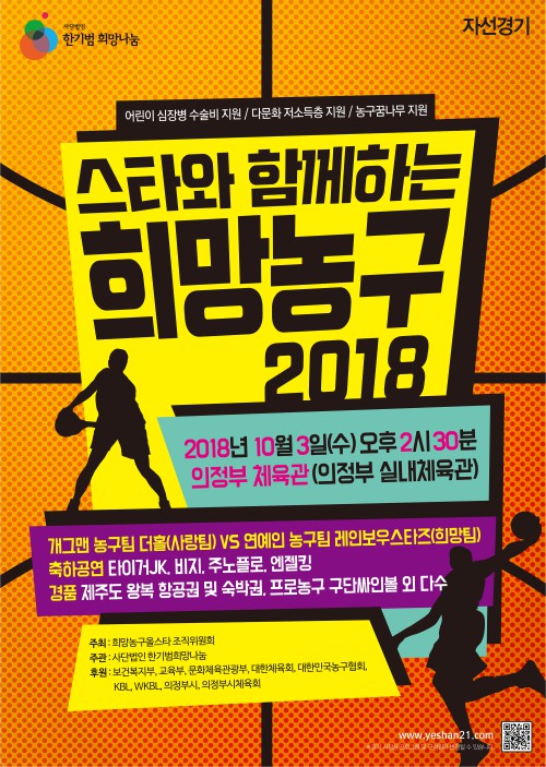 »ç´Ü¹ýÀÎ Çѱâ¹üÈñ¸Á³ª´®Àº ¿À´Â 10¿ù3ÀÏ ¼ö¿äÀÏ ¿ÀÈÄ 2½Ã 30ºÐ ÀÇÁ¤ºÎüÀ°°ü¿¡¼ Èñ¸Á³ó±¸¿Ã½ºÅ¸Á¶Á÷À§¿øÈ¸ ÁÖÃÖ, »ç´Ü¹ýÀÎ Çѱâ¹üÈñ¸Á³ª´® ÁÖ°üÀ¸·Î º¸°Çº¹ÁöºÎ, ±³À°ºÎ, ¹®ÈüÀ°°ü±¤ºÎ, ´ëÇÑüÀ°È¸, ´ëÇѹα¹³ó±¸Çùȸ, KBL, WKBL, ÀÇÁ¤ºÎ½Ã, ÀÇÁ¤ºÎ½ÃüÀ°È¸ÀÇ ÈÄ¿øÀ¸·Î ‘2018 ½ºÅ¸¿Í ÇÔ²²ÇÏ´Â Èñ¸Á³ó±¸’ ÀÚ¼±°æ±â¸¦ °³ÃÖÇÑ´Ù.