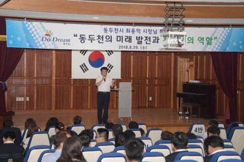 ÃÖ¿ë´ö µ¿µÎõ½ÃÀåÀº Áö³ 8¿ù29ÀÏ Áß¾Ó°íµîÇб³¸¦ ¹æ¹®ÇÏ¿©, °íµîÇб³ 1Çгâ Çлý 150¿©¸í°ú Çкθð ´ëÇ¥¸¦ ´ë»óÀ¸·Î Ư°À» ÁøÇàÇß´Ù. À̳¯ °¿¬Àº ÃÖ¿ë´ö ½ÃÀåÀÌ µ¿µÎõ½ÃÀåÀ¸·Î ´ç¼±µÇ°í óÀ½ ¿¸®´Â Çлý ´ë»ó Ư°À¸·Î, ÃÖµ·±¸ Áß¾Ó°íµîÇб³ÀåÀÇ ¿äûÀ¸·Î ¿¸®°Ô µÇ¾ú´Ù.