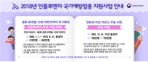 ÀÌ¿¡ µû¶ó ¿ÃÇØ ¹«·á ¿¹¹æÁ¢Á¾ ´ë»óÀº ÃÑ 324¸¸2,740¸í(¾î¸°ÀÌ 172¸¸4,974¸í, ³ëÀÎ 151¸¸7,766¸í)À¸·Î Áö³ÇØ 179¸¸9,742¸í ºñÇØ 144¸¸ ¿©¸íÀÌ ´Ã¾î³´Ù. ´Ü, ¾î¸£½ÅÀº Áö³ÇØ¿Í µ¿ÀÏÇÏ°Ô ¸¸ 65¼¼ ÀÌ»óºÎÅÍ ¹«·áÁ¢Á¾ÀÌ °¡´ÉÇÏ´Ù.