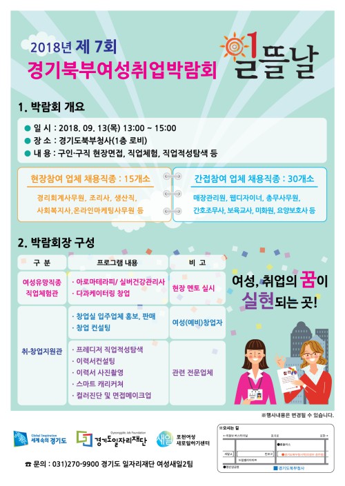 °æ±âµµ¿Í °æ±âµµÀÏÀÚ¸®Àç´ÜÀº 13ÀÏ ¿ÀÈÄ 1½ÃºÎÅÍ °æ±âµµÃ» ºÏºÎû»ç º°°ü 1Ãþ ·Îºñ¿Í ¾ß¿Ü°ø°£¿¡¼ ¿©¼ºÃë¾÷¹Ú¶÷ȸ ‘À϶㳯’À» °³ÃÖÇÑ´Ù.