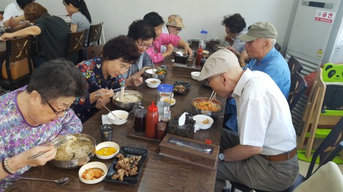 À̳¯ ¾î¸£½ÅµéÀº ¸ðó·³ ÀÌ¿ôµé°ú ´ëȸ¦ ³ª´©¸ç ¿Ü·Î¿òÀ» ÀØ°í ¸ÀÀÖ´Â ¿Ü½ÄÀ» Áñ°åÀ¸¸ç, ÇÑ ¾î¸£½ÅÀº “º°¹Ì·Î ½¡ºÒ°í±â¸¦ °çµéÀÎ ±¹¼öµµ ¸Ô°í ÀÌ¿ôµé°ú ´ëȵµ ³ª´ ¼ö ÀÖ¾î¼ Áñ°Å¿î ½Ã°£À̾ú´Ù”¶ó°í Çß´Ù.
