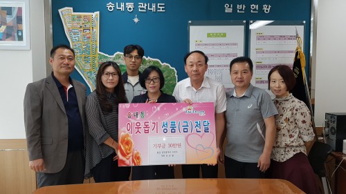 µ¿µÎõ½Ã ¼Û³»µ¿ ¼ÒÀç Ȳ±Ý°øÀÎÁß°³»ç »ç¹«¼Ò(´ëÇ¥ °ø¼ø¿)´Â Ãß¼®À» ¸ÂÀÌÇÏ¿© Áö³ 11ÀÏ ¼Û³»µ¿ÇàÁ¤º¹Áö¼¾ÅÍ¿¡ ÀÌ¿ôµ½±â ±âºÎ±Ý 30¸¸¿øÀ» Àü´ÞÇß´Ù.