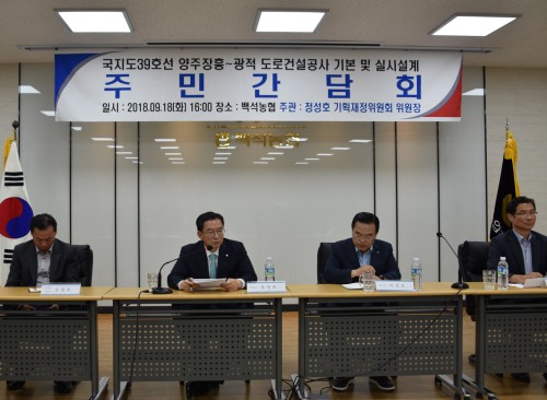 ±¹È¸ Á¤¼ºÈ£ ±âȹÀçÁ¤À§¿øÀå(¾çÁÖ½Ã/´õºÒ¾î¹ÎÁÖ´ç)Àº 18ÀÏ ¿ÀÈÄ ¾çÁÖ ¹é¼® ³óÇù¿¡¼ '39¹ø ±¹Áöµµ Áֹΰ£´ãȸ'¸¦ °³ÃÖÇß´Ù.