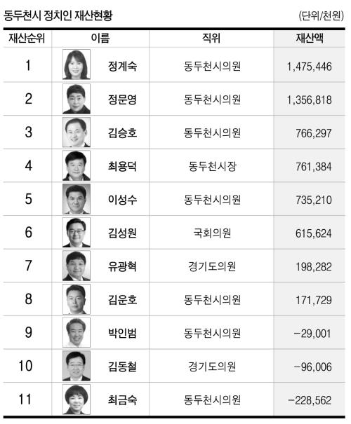 ±× ´ÙÀ½Àº À¯±¤Çõ °æ±âµµÀÇ¿ø 1¾ï9õ828¸¸2õ¿ø, ±è¿îÈ£ µ¿µÎõ½ÃÀÇ¿ø 1¾ï7õ172¸¸9õ¿ø, ¹ÚÀιü µ¿µÎõ½ÃÀÇ¿ø –2õ900¸¸1õ¿ø, ±èµ¿Ã¶ °æ±âµµÀÇ¿ø –9õ600¸¸6õ¿ø, Ãֱݼ÷ µ¿µÎõ½ÃÀÇ¿ø –2¾ï2õ856¸¸2õ¿ø ¼øÀÌ´Ù.