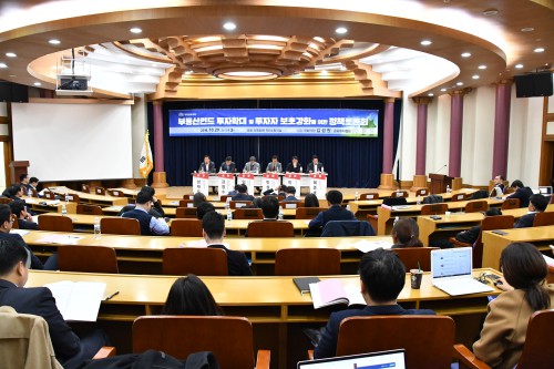 ÀÚÀ¯Çѱ¹´ç ±è¼º¿ø ÀÇ¿ø(°æ±â µ¿µÎõ½Ã·¿¬Ãµ±º)ÀÌ 10¿ù29ÀÏ ±¹È¸¿¡¼ ÁÖÃÖÇÑ 'ºÎµ¿»êÆÝµå ÅõÀÚ È®´ë ¹× ÅõÀÚÀÚ º¸È£ °È'¸¦ À§ÇÑ Á¤Ã¥ Åä·Ðȸ°¡ ¼ºÈ²¸®¿¡ ¸¶ÃÆ´Ù.