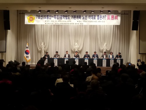 ÁÂÀåÀ» ¸ÃÀº ±ÇÀçÇü(ÀÇÁ¤ºÎ3) ÀÇ¿øÀº “±¹Åä±³ÅëºÎ°¡ °í½ÃÇÑ 7È£¼± ¿¬Àå µµºÀ»ê~¿ÁÁ¤ ±¤¿ªÃ¶µµ ±âº»°èȹÀº ÀÇÁ¤ºÎ½Ã¸¦ °üÅëÇØ ¼¿ï°ú ¾çÁÖ¸¦ ÀÕ°í ÀÖÀ½¿¡µµ ºÒ±¸Çϰí, °á±¹ ´Ü¼±Ã¶µµ¿Í ž¼®¿ª Çϳª¸¸ÀÌ °í½ÃµÈ »óȲ”À̶ó¸ç, “ºñ¿ëÀ» ÃÖ¼ÒÈÇÑ´Ù´Â ¸í¸ñÀ¸·Î ½Å°î‧Àå¾ÏÁö±¸, ¹Î¶ôÅÃÁöÁö±¸¸¦ ¹èÁ¦ÇÑ Ã¤ °ø»ç°¡ ½ÃÀ۵ȴٸé, Âø°ø ÀÌÈÄ¿¡´Â ³ë¼±º¯°æÀÌ ½±Áö ¾ÊÀ» °ÍÀ̸ç, ÀÌ¿¡ Áö¿ª Á¤Ä¡ÀÎ, öµµÀü¹®°¡, °ü°è °ø¹«¿ø, ½Ã¹Îµé°ú ÇÔ²² ½ÇÈ¿Àû ´ë¾È ¹× Á¤Ã¥ µîÀ» ³íÀÇÇÏ´Â ÀÚ¸®¸¦ ¸¶·ÃÇß´Ù”¸ç Åä·ÐȸÀÇ ÃëÁö¸¦ ¹àÇû´Ù.