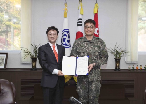 µ¿¾ç´ë(ÃÑÀå ÃÖ¼ºÇØ)¿Í À°±º Á¦28º¸º´»ç´Ü(»ç´ÜÀå ¼ÒÀå °°ÇÀÛ)Àº 11¿ù6ÀÏ »ç´Ü Á¢°ß½Ç¿¡¼ Çбº Á¦ÈÞ Çù¾àÀ» ü°áÇß´Ù.