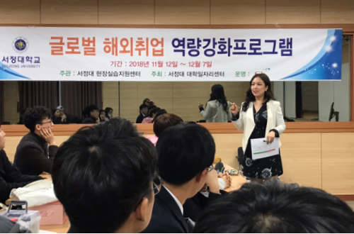 ¼Á¤´ëÇб³(ÃÑÀå ±èÈ«¿ë)´Â 2018³â ÇØ¿ÜÃë¾÷ÀÚ 2¸í ´Þ¼ºÀ» ºñ·ÔÇØ ÇØ¿ÜÃë¾÷À» À§ÇÑ ÀçÇлý Ãë¾÷¿ª·®°È ÇÁ·Î±×·¥¿¡ ¹ÚÂ÷¸¦ °¡Çϰí ÀÖ´Ù. ´ëÇÐÀÏÀÚ¸®¼¾ÅͰ¡ ÁÖ°üÇϰí ÇöÀå½Ç½ÀÁö¿ø¼¾ÅÍ¿ÍÀÇ Çù¾÷À¸·Î ÁøÇàÇÏ´Â ‘±Û·Î¹ú ÇØ¿ÜÃë¾÷ ¿ª·®°È ÇÁ·Î±×·¥’Àº Áö³ 11¿ù12ÀϺÎÅÍ ½ÃÀÛÇÏ¿´À¸¸ç 12¿ù7ÀϱîÁö ÃÑ 15ȸ¿¡ °ÉÃÄ ÁøÇàµÈ´Ù.