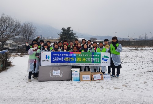 ½ÅÇÑ´ëÇб³(ÃÑÀå ¼°©¿ø) ±³Á÷¿ø ¹× ÇлýµéÀÌ 12¿ù13ÀÏ ÀÇÁ¤ºÎ ÀÏ´ë¿¡¼ ‘»ç¶ûÀÇ ¿¬Åº’°ú ‘Çູ³ª´®¹Ú½º’¸¦ Àü´ÞÇÏ´Â ºÀ»ç¸¦ ÆîÃÆ´Ù.