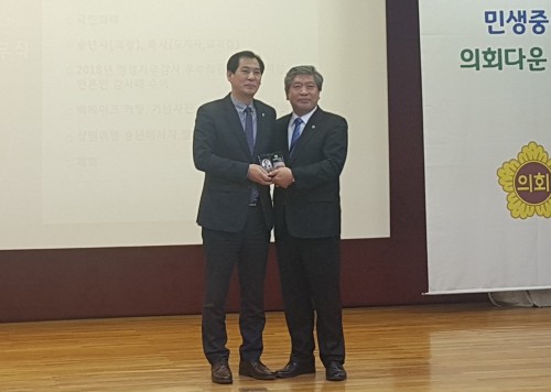 °æ±âµµÀÇȸ º¸°Çº¹ÁöÀ§¿øÈ¸ ÀÌ¿µºÀ(´õºÒ¾î¹ÎÁÖ´ç, ÀÇÁ¤ºÎ2) ÀÇ¿øÀÌ 21ÀÏ °æ±âµµÀÇȸ 1Ãþ ´ëȸÀǽǿ¡¼ ¿¸° ÀÇ¿ø Á¾¹«½Ä¿¡¼ ‘2018 ÇàÁ¤»ç¹«°¨»ç ¿ì¼öÀÇ¿ø»ó’À» ¼ö»óÇß´Ù.