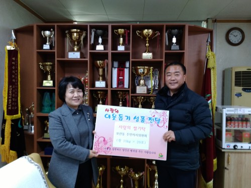 ÇÑÆí, À±¿µ¼ø º¸»êµ¿ÀåÀº "°ü³» ¾î·Á¿î ÀÌ¿ôÀ» À§ÇÑ µû¶æÇÑ ¹è·Á¿Í ³ë·Â¿¡ °¨»çÇϸç, ³ª´®À» ½ÇõÇÏ´Â °ÍÀº °Ç°ÇÑ Áö¿ª»çȸ¸¦ Á¶¼ºÇÏ´Â µ¥ Å« ÈûÀÌ µÈ´Ù.”¶ó¸ç °¨»ç¸¦ Ç¥Çß´Ù.