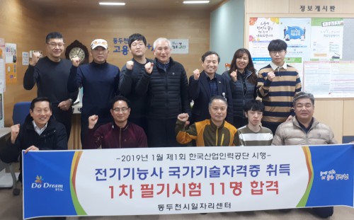 µ¿µÎõ½Ã ÀÏÀÚ¸®¼¾ÅÍ¿¡¼´Â Çѱ¹»ê¾÷Àη°ø´Ü¿¡¼ ½ÃÇàÇÑ 2019³â Á¦1ȸ Àü±â±â´É»ç ±¹°¡±â¼úÀÚ°Ý ½ÃÇè¿¡¼ 1Â÷ Çʱâ½ÃÇè¿¡ 28¸íÀÌ ÀÀ½ÃÇÏ¿© 11¸íÀÌ ÇÕ°ÝÇÏ´Â Äè°Å¸¦ ¿Ã·È´Ù.