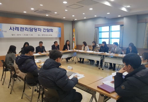 À̹ø °£´ãȸ´Â ±×°£ÀÇ ³ë°í¸¦ °Ý·ÁÇϰí, º¹Áö¼ºñ½º Àü¹®¼º È®º¸¸¦ À§ÇÑ ¾÷¹« °øÀ¯, ¾÷¹«ÀýÂ÷ °ü·Ã ÀǰßÀ» ¼ö·ÅÇÏ´Â ¼ÒÅëÀÇ ½Ã°£À» °®°íÀÚ ¸¶·ÃµÆÀ¸¸ç, ÁÖ¿ä ³»¿ëÀ¸·Î´Â À¾¸éµ¿ º¹Áö¾÷¹«ÀÇ Á߿伺ÀÌ Áõ´ëÇÔ¿¡ µû¶ó È¿À²Àû ¾÷¹«¼öÇàÀ» À§ÇÑ ¿ª·®°È Áö¿ø Â÷¿ø¿¡¼ °æ±âº¹ÁöÀç´Ü ¸ÂÃãÇü ÄÁ¼³ÆÃÀÇ 2019³â ÃßÁø¿¡ ´ëÇÑ ÀýÂ÷¸¦ °øÀ¯ÇÏ´Â ½Ã°£À¸·Î ÁøÇàµÆ´Ù.