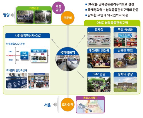 ¶Ç À̿밴¿¡°Ô ¸é¼¼Á¡, ³²ºÏÇÑ ¸ÀÁý ¹× Ư»êǰ ¸ÅÀå µî ÆíÀǽü³À» Á¦°øÇϰí, ÁÖº¯ DMZ°ü±¤ »óǰ°ú ¿¬°è¸¦ ÃßÁøÇÑ´Ù. ±×·¸°Ô µÉ °æ¿ì ±¹Á¦ÆòÈ¿ªÀº ³²ºÏ ºÐ´Ü°ú ´ëÄ¡¸¦ »ó¡ÇÏ´Â DMZ¸¦ ‘ÆòÈÀÇ °ø°£’À¸·Î Å»¹Ù²Þ½ÃŰ´Â »ó¡¹°·Î ÀÚ¸®¸Å±èÇÒ °ÍÀ¸·Î Àü¸ÁµÈ´Ù.
