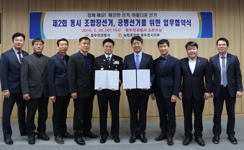 ³óÇùÁß¾Óȸ µ¿µÎõ½ÃÁöºÎ(ÁöºÎÀå ³²»ó½Ä)´Â Áö³ 20ÀÏ µ¿µÎõ°æÂû¼(¼Àå ¿ÀÁö¿ë)¿Í 'Á¦2ȸ µ¿½ÃÁ¶ÇÕÀå¼±°Å'ÀÇ ±ú²ýÇÏ°í ¾Æ¸§´Ù¿î ¼±°Å¸¦ À§ÇØ ±Ýǰ·ºÎÁ¤¼±°Å ±ÝÁö ¹× Áعý¼±°Å¸¦ À§ÇÑ ¾÷¹«Çù¾àÀ» ü°áÇß´Ù.