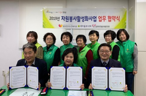 µ¿µÎõ½Ã³ëÀκ¹Áö°ü(°üÀå ¼Õ¿ë¹Î)°ú µ¿µÎõ½ÃÁ¾ÇÕÀÚ¿øºÀ»ç¼¾ÅÍ(¼¾ÅÍÀå ¼Õ´öȯ), »õ¸¶À»ºÎ³àȸ(ȸÀå ¹Ú¼øÈ£)´Â Áö³ 11ÀÏ ÀÚ¿øºÀ»çȰµ¿ÀÇ ¹ßÀü°ú Ȱ¼ºÈ¸¦ µµ¸ðÇϱâ À§ÇÏ¿© '2019³â ÀÚ¿øºÀ»çȰ¼ºÈ»ç¾÷ ¾÷¹«Çù¾à'À» ü°áÇÏ¿´´Ù.