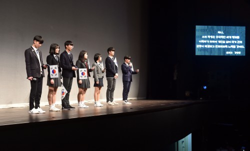 ¼±¾ð¹® ¹ßÇ¥´Â ÆòÈ °üÁ¡ÀÇ ¿ª»ç ÀνÄÀ» È®¸³Çϱâ À§ÇØ Çлý ÁÖµµ ¿ª»ç üÇè°ú ޱ¸ Ȱµ¿ÀÇ ÀÏȯÀ¸·Î ÁøÇàÇÏ´Â ¹ÂÁöÄà ‘Æäġī’°ü¶÷ Çà»ç¿¡ ¾Õ¼ ÁøÇàÇß´Ù. °æ±âµµ Çлý 1,200¿©¸í°ú ÀÎõ Çлý 300¿© ¸íÀÌ Âü¼®ÇÑ °¡¿îµ¥, Çлý¼±¾ð¹® ÀÛ¼º¿¡ Âü¿©ÇÑ Áß°í»ý ´ëÇ¥ 13¸íÀÌ ¼±¾ð¹®À» ³¶µ¶Çß´Ù.