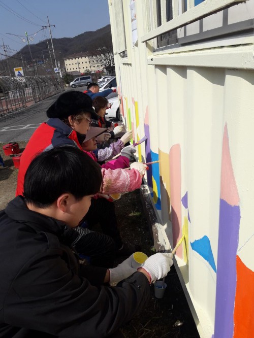 À̳¯ Çà»ç¿¡ Âü¿©ÇÑ ÁÖ¹ÎÀÚÄ¡À§¿ø ¹× ÀÚ¿øºÀ»çÀÚµéÀº º¸»êµ¿ ÇàÁ¤º¹Áö¼¾ÅÍ ÁÖÂ÷Àå ¿·¿¡ ÀÖ´Â »õ¸¶À»ÁöµµÀÚ·ºÎ³àȸ ÄÁÅ×ÀÌ³Ê Ã¢°í º®¸éÀÇ ¹þ°ÜÁø ÆäÀÎÆ®¿Í ³ìÀ» Á¦°ÅÇÑ µÚ »õ·ÎÀÌ º®È¸¦ Á¶¼ºÇϸç, ¹ÙÅÁÄ¥ ÀÛ¾÷À» ¸ÕÀú ÇÑ ÇÑ ÈÄ ¹Ø±×¸² ¹× ä»ö ÀÛ¾÷±îÁö ¿Ï·áÇÏ¿´´Ù.