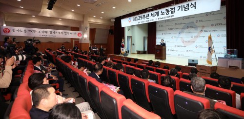 ÀÌÀç¸í °æ±âµµÁö»ç°¡ 30ÀÏ ¿ÀÀü °æ±âÁ¾Çճ뵿º¹Áöȸ°ü ´ë°´ç¿¡¼ ¿¸° ‘Á¦129Áֳ⠼¼°è ³ëµ¿Àý ±â³ä½Ä’¿¡¼ “³ëµ¿ÀÌ Áß½ÉÀÌ µÇ´Â »çȸ¸¦ ¸¸µå´Â °ÍÀº ¿ì¸® ÀڽŰú ´ÙÀ½ ¼¼´ëÀÇ ÇູÀ» À§ÇØ, ±¹°¡ °øµ¿Ã¼ÀÇ Á¤»óÀû ¹ßÀü°ú ¹ÎÁÖÁÖÀÇÀÇ ¿Ã¹Ù¸¥ ¿î¿µÀ» À§ÇØ ¹Ýµå½Ã ÇÊ¿äÇÏ´Ù”°í °Á¶Çß´Ù.